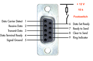In N1MM kan je middels een footswitch de functietoetsen bedienen. Op die manier kan je dus typen met twee handen en met één voet de funtietoets bedienen. De footswitch komt op de DSR input en +12V via een 10 k weerstand. DSR input is PIN 6 van de DB9 connector. Zie schema.